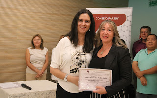 María Cristina Fascia, titular del ConsejoFarJuy expresó que “es un orgullo para nuestra institución poder llevar adelante este reconocimiento a la trayectoria de nuestros farmacéuticos jujeños”. Y agregó que “aprovechamos la oportunidad para realizar la entrega de los certificados sobre la Especialidades Farmacéuticas en Esterilización a los farmacéuticos Gustavo Ernesto Poccioni y Anelise Moreno San Millan”. Del mismo modo, las autoridades de la institución profesional dieron la bienvenida a los nuevos matriculados a los cuales se les hizo entrega del certificado y el libro con las leyes del Consejo de Farmacéuticas de Jujuy. “Bienvenidos farmacéuticos Carmen Beatriz Marconi y Pablo Fernando Gaspar”, expresó Fascia durante el acto.