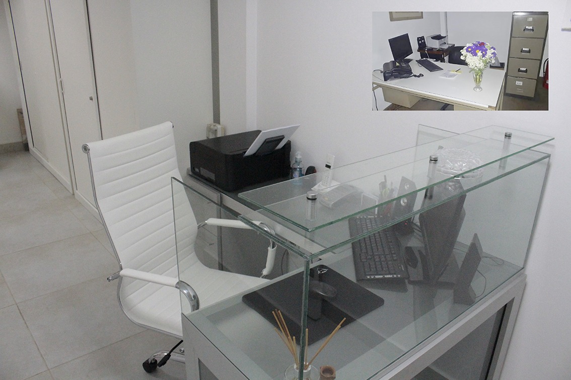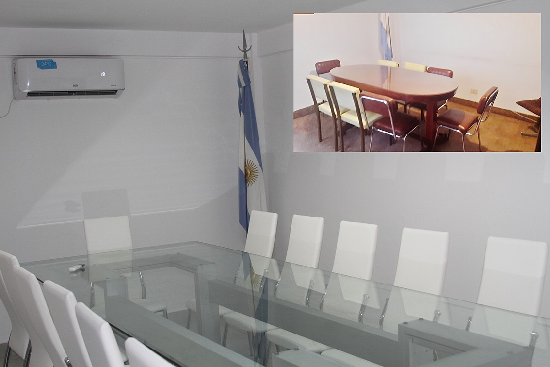 Continuado con el proceso de cambio de aspecto y funcionalidad de la sede del Consejo Farmacéutico de Jujuy, el 15/11/2022 se realiza el traslado, instalación y puesta en obra del mobiliario adquirido con la empresa “Alu-metal”, consistiendo en mesa de aluminio anodizada natural con vidrio templado, más cortina de bandas verticales Premium blackout.El 17/11/2022. Se efectúa la colocación del vinilo esmerilado en la puerta de ingreso. El mismo cuenta con logo del Consejo Farmacéutico, días y horarios de atención y número de teléfono.