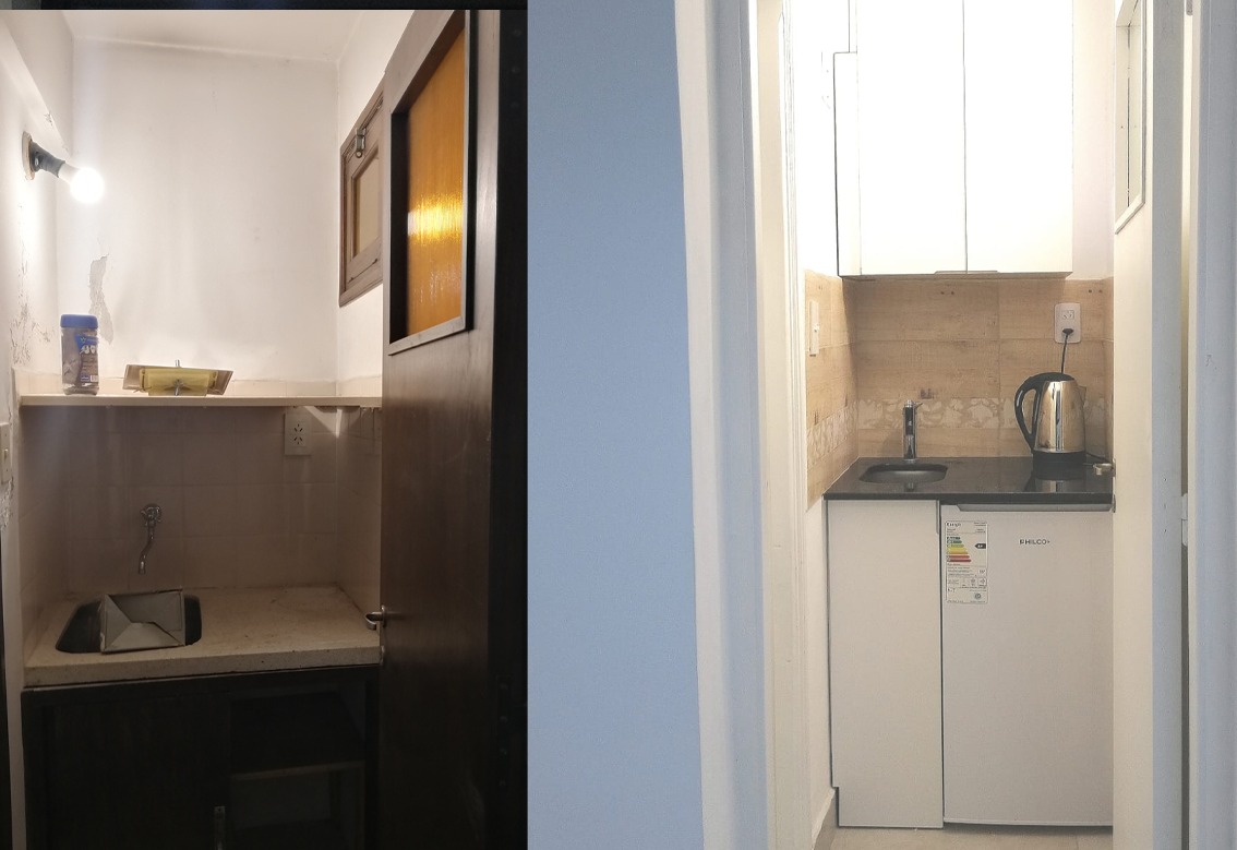 El 06/04/2023. Inicia el trabajo de colocación de mueble en kitchenette a cargo del Sr. Rojas Ramírez Martin. Consiste en una alacena y bajo mesa, como también en el acondicionamiento de la ventana ubicada en el sector y colocación de accesorios en el baño.